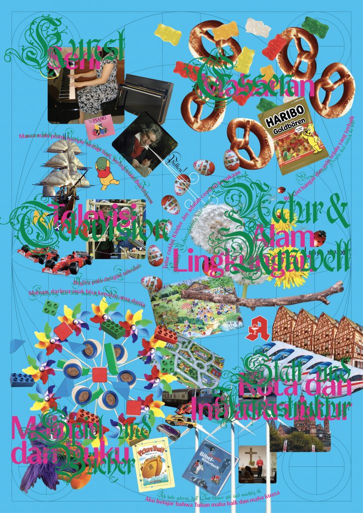 Where Zarina maps absence, I map construction. I chart the objects I grew up with across three life stages — Germany, arrival in Indonesia, and eventual integration — revealing identity as a shifting topography of influences, conflicts, and adaptations. These objects act as coordinates of hidden values, showing how identity forms through the interplay between the external (culture, environment, belongings) and the internal (beliefs, meaning, memory).